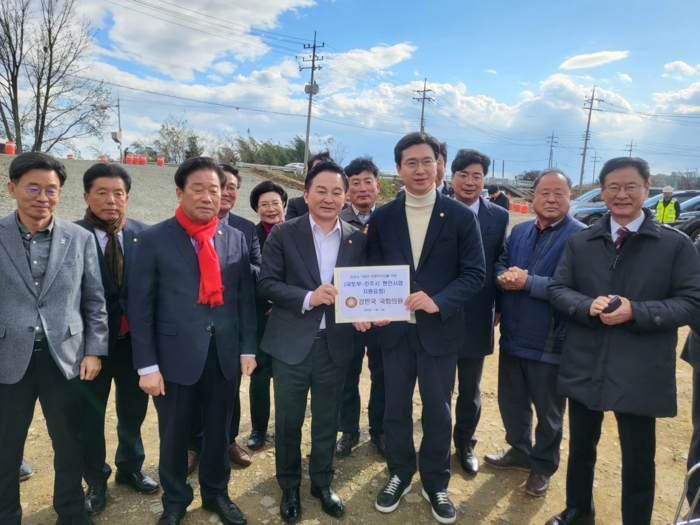먼저 강 의원과 원 장관은 지역 숙원 사업 중 하나인 진주 집현-문산 간 국도 대체 우회도로(약 3,023억 원) 개설사업 현장을 직접 찾아, 사업의 필요성에 대해 뜻을 함께 모았다.