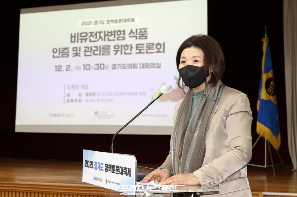 [프레스뉴스] 김대일 기자= 경기도의회 왕성옥 의원(더불어민주당, 비례)이 좌장을 맡은 「비유전자변형 식품 인증 및 관리를 위한 토론회」가 2일 개최됐다.