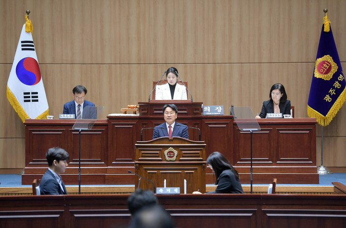 강 시장은 이날 광주시의회 본회의에서 예산안 시정연설을 통해 “이제 GRDP로 수치화하는 양적 성장의 시대는 끝났다. 대전환의 시대에 광주는 AI(인공지능)‧미래차산업 등과 같은 미래주도산업과 창업성장, 인재양성의 크기를 키우고, 광주가 지켜온 가치인 나눔과 연대, 민주주의, 문화에도 주목해야 한다”며 “그 가치가 돌봄경제, 사회적경제, 콘텐츠산업 등 새로운 기회가 될 수 있기 때문이다”고 강조했다.