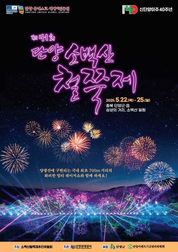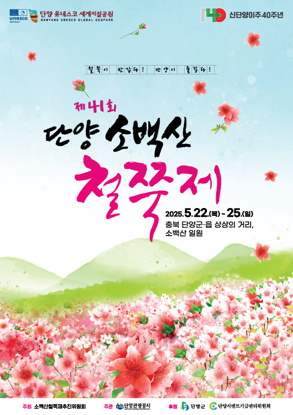 아름다운 철쭉으로 명성이 높은 단양군에서 제41회를 맞이하는 소백산 철쭉 축제가 2025년 5월 22일부터 25일까지 4일간, 단양군 읍내 중심지와 소백산 국립공원 일원에서 성대히 개최될 예정이다. 본 축제는 단양군 소백산철쭉제추친위원회가 주최하고 단양관광공사가 주관, 단양군과 단양시멘트기금관리위원회가 후원한다.