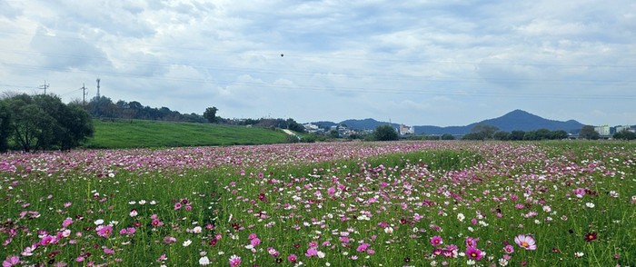 코스모스는 10월 9일부터 13일까지 열리는 축제 기간에 맞춰 만개해 절정을 이룰 것으로 기대된다.