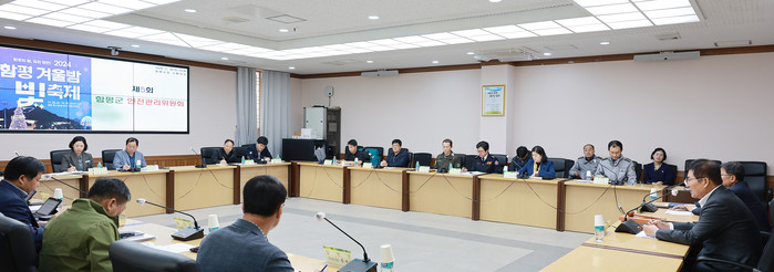 [전남=프레스뉴스] 강래성 기자= 전남 함평군이 14일 군청 대회의실에서 제5회 함평군 안전관리위원회를 개최했다. 이날 회의는 함평군이 올해 처음 개최하는 함평 겨울빛축제의 안전관리계획 심의를 위해 마련됐다.
