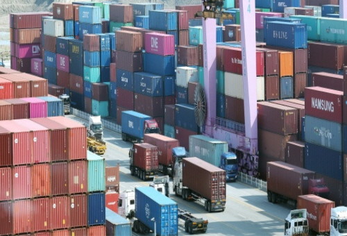| ▲인천신항 컨테이너 터미널에 수출입 컨테이너가 쌓여 있는 모습.(사진= 뉴스1) |