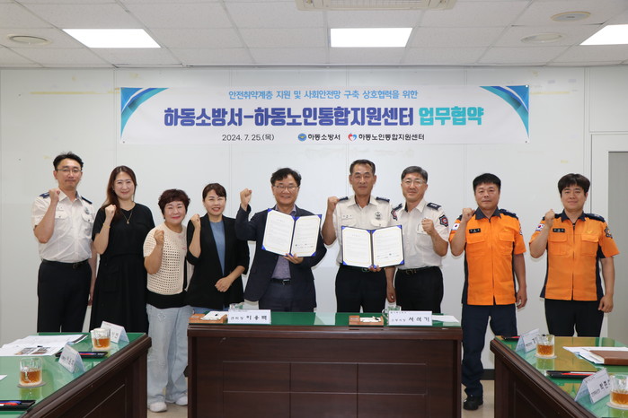 주요 협약 내용은 ▲하동노인통합지원센터 직원 및 안전 취약계층 대상 소방안전교육 지원 ▲주택용 소방시설 설치 홍보 및 지원 ▲세대 내 화재·생활안전 위험 요인 점검 ▲U-119 안심콜 서비스 관련 내용 설명 및 홍보 ▲안전·복지 사각지대 해소를 위한 시책 및 추진 사항 공유 등이다.