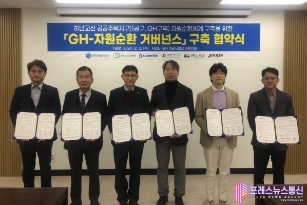 [프레스뉴스] 류현주 기자= 경기주택도시공사(GH)는 12일 GH 하남사업단 대회의실에서 하남교산 공공주택지구(1공구)의 폐기물 처리와 자원순환 체계 구축을 위한 ‘GH 자원순환 거버넌스’ 협약식과 발대식을 개최했다고 밝혔다.