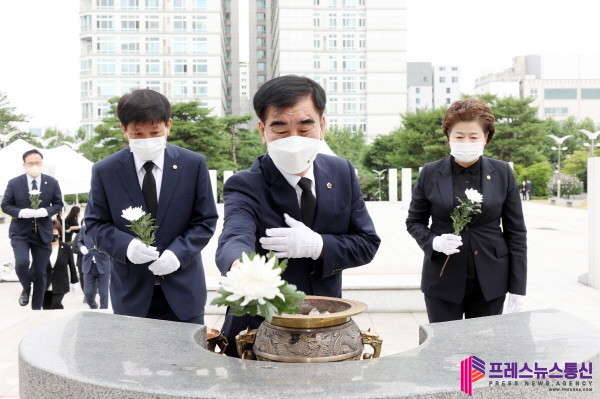 염 의장과 남경순(국민의힘, 수원1)·김판수(더민주, 군포4) 부의장은 이날 오전 수원시 현충탑에서 순국선열의 넋을 기리며 공식활동에 들어갔다.