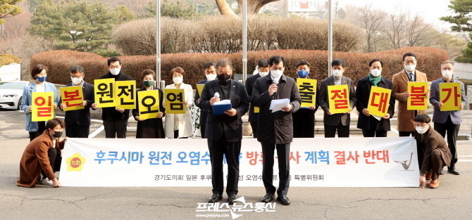 | ▲ 경기도의회 일본 후쿠시마 방사성 오염수 방류 대응 특별위원회, 후쿠시마 원전 오염수 해양방류 공사 계획 반대성명 발표(사진=경기도의회) |