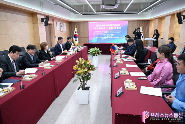 [프레스뉴스] 장현준 기자= 안산시(시장 이민근)는 지난 19일 푸렙도르지 오치린 주지사를 포함한 11명의 몽골 우부르항가이주 대표단이 안산시청을 방문해 양 도시 간 우호협력도시 관계수립 합의서를 체결했다고 20일 밝혔다.