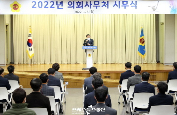이어 2022년의 가장 큰 변화로 ‘전부 개정된 지방자치법 본격 시행’과 ‘신청사 이전에 따른 광교시대 시작’을 꼽으며 의회사무처 공직자의 ‘비상한 노력’을 당부했다.