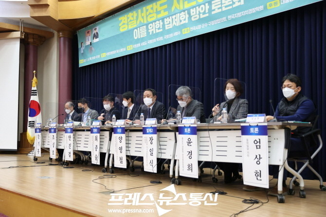 [프레스뉴스] 김대일 기자= 자치경찰이 주민의 눈높이에서 일할 수 있도록 경찰서장 직선 등 주민밀착형 기초단위 자치경찰제 도입을 위한 관련 법 개정 토론회가 전국시장·군수·구청장협의회(대표회장 황명선 논산시장)와 한국지방자치경찰학회(학회장 최종술 동의대 교수)의 공동주관으로 1월 6일 (목) 오전 10시 국회의원회관 제1소회의실에서 열렸다.