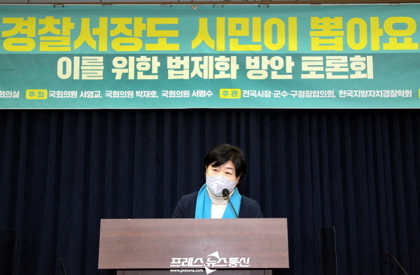 「경찰서장도 시민이 뽑아요! 법제화 방안 토론회」는 서영교 국회행정안전위원회 위원장, 박재호의원, 서범수의원이 공동주최하였으며, 전국시장군수구청장협의회는 이날 토론회에서 논의된 내용을 바탕으로 관련 법안개정에 주력할 예정이라고 밝혔다.