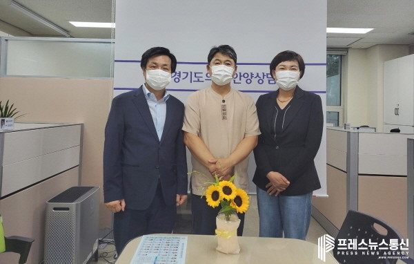 [프레스뉴스] 김대일 기자= 경기도의회 문형근 의원(더불어민주당, 안양3)이 13일 경기도의회안양상담소에서 (사)유쾌한공동체 안승영 대표로부터 유쾌한공동체 보금자리프로젝트의 건축위원으로 위촉받고, 이채명의원(더불어민주당, 안양6)과 취약계층 돌봄 사업 활성화 관련으로 정담회를 가졌다.