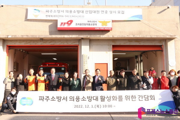 [프레스뉴스] 김대일 기자= 경기도의회 교섭단체 국민의힘(대표의원 곽미숙, 고양6)은 12월 1일 조리읍 행정복지센터에서 의용소방대(이하 의소대) 활성화를 위한 간담회를 가졌다.