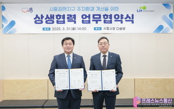 [프레스뉴스] 장현준 기자= 시흥시(시장 임병택)는 3월 31일 시청 다슬방에서 LH광명시흥사업본부(본부장 최용택)와 시흥장현 공공주택지구 내 고질적인 주차난을 해소하고, 주차 환경을 개선하고자 업무협약을 체결했다.