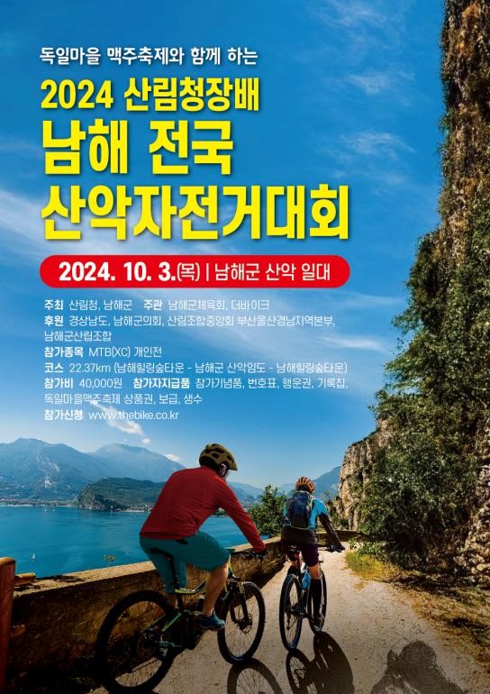 남해군체육회, 더바이크, 한국산악마라톤연맹, 대한오리엔티어링연맹에서 행사를 주관하며, 각 종목별 참가접수 신청은 해당 연맹 홈페이지에서 가능하다. 접수 기간은 산악자전거와 산악마라톤은 9월 30일까지, 오리엔티어링은 9월 28일까지다.