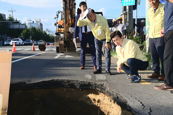 조규일 진주시장은 상평동 씽크홀 발생 현장을 방문하고 “사고 안전조치 및 사후복구에 만전을 기하도록 할 것”을 지시했다.