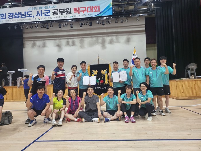 ▲진주시청 탁구동호회가 지난 9월 28일 밀양시 문화체육관에서 개최된 제12회 경남도지사기 도·시·군 공무원 탁구대회에서 단체전과 개인전 등 4개 종목에서 우승하는 등 탁월한 성적을 거뒀다 (사진=진주시) |