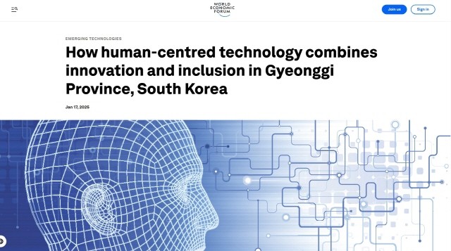 다보스포럼은 17일 공식 홈페이지(www.weforum.org) ‘EMERGING TECHNOLOGIES’ 세션에서 ‘경기도에서 사람 중심 기술이 혁신과 포용을 결합하는 방법’(How human-centred technology combines innovation and inclusion in Gyeonggi Province, South Korea)이란 제목의 김 지사의 기고문을 게재했다.