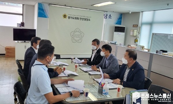 [프레스뉴스] 김대일 기자= 경기도의회 김태희 의원(안산시2, 경제노동위), 김철진 의원(안산시7, 문화체육관광위),강태형 의원(안산시5, 농정해양위)은 23일 안산상담소에서 경기신용보증재단 중부지역본부장, 안산지점장으로부터 경기신용보증재단 안산지점의 주요 업무에 대해 보고받는 자리를 가졌다.