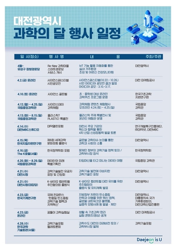 [프레스뉴스] 최정현 기자=‘대한민국 과학수도’ 대전시가 4월 과학의 달을 맞아 다채로운 시책을 추진한다.