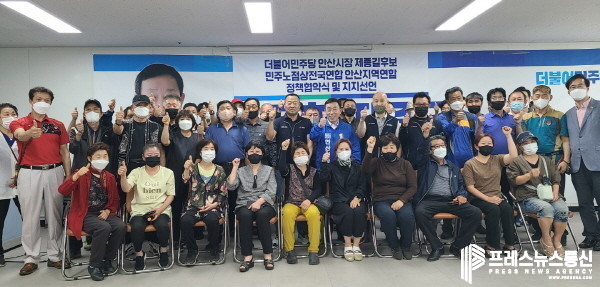 안산지역연합은 이어 안산의 노점상 정책과 관련 ▲노점상 문제 단속과 배제가 아닌 소통과 협치로 대응 ▲노점상 문제 해결과 처우 개선을 위해 실무협의회를 구성 정기적인 협의 진행 ▲‘노점상 생계보호를 위한 특별법’ 제정을 위해 지역 정치인들과 공동 노력 추구 등을 제 후보와 함께 추진해 나기로 협약했다.
