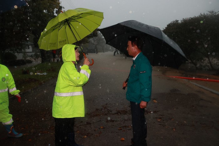 이날 박동식 사천시장은 용현면 사면붕괴지역 및 축동초 침수지역 등 집중호우 피해 현장을 살펴보면서, 시민들의 안전을 최우선 확보할 것을 지시했다.