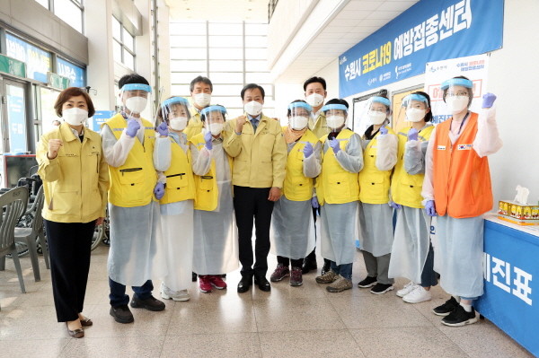 현장에서 장현국 의장은 한국건강관리협회 경기도지부 이영순 원장과 경기도 및 수원시 등 유관기관 질병정책 관계부서 담당자를 만나 경기도 코로나19 예방접종 추진현황을 점검하고 예방접종을 위해 방문한 도민들을 격려했다.