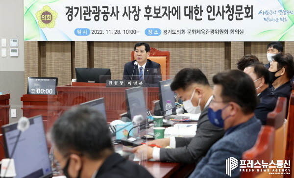 이번 인사청문회는 지난 11월 21일 경기도·경기도의회가 체결한 ‘산하기관장 인사청문 업무협약’에 따라, 17일 도가 인사청문을 요청한 6개 산하기관장 중 문화체육관광위원회 소관인 경기관광공사 사장 후보자에 대한 정책역량 검증이 실시된 것이다.