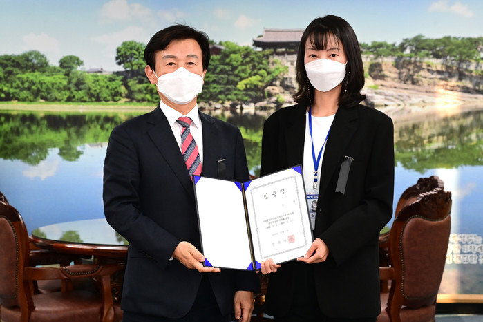진주시는 영어 전자도서관의 전문성 확보 및 양질의 영어 교육서비스 제공을 위해 지난 6월 임기제 공무원 채용공고를 시작으로 서류전형, 면접시험 등 절차를 거쳐 스양 씨를 최종 합격자로 결정하고 이날 임용장을 수여했다.