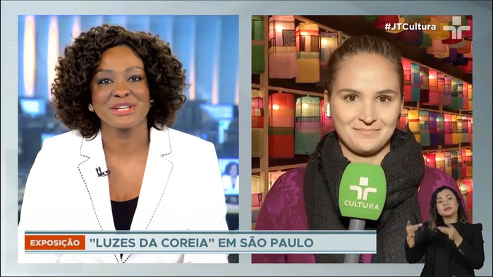 | ▲ 브라질 방송사의 ‘진주실크등’ 전시 소개 장면(사진=진주시) |