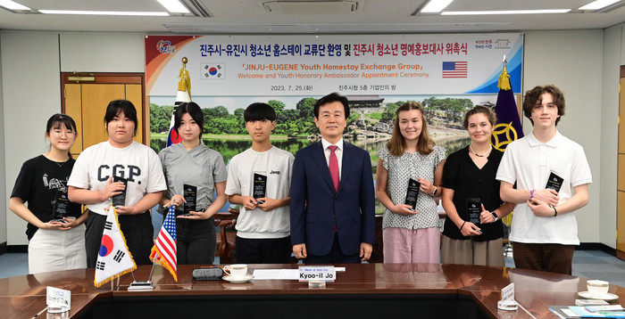 진주시는 대한민국 지방자치단체 최초로 1961년 미국 유진시와 자매결연을 맺고 62년간 변함없는 우정으로 활발한 교류를 이어오고 있다. 지난 2002년부터 130명의 청소년이 양 시를 오가며 청소년 교류를 해왔으며 향후 사회, 경제, 문화 전반에 걸쳐 교류 기회를 확대해 나갈 예정이다.