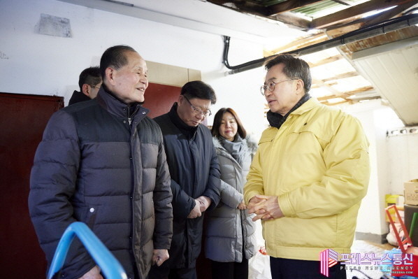[프레스뉴스] 장현준 기자= 9일 경기도 전역에 한파특보가 발효된 가운데 김동연 경기도지사가 수원시 팔달구 행궁동 주거취약세대(쪽방촌)를 찾아 신속한 난방비 지원을 약속했다.
