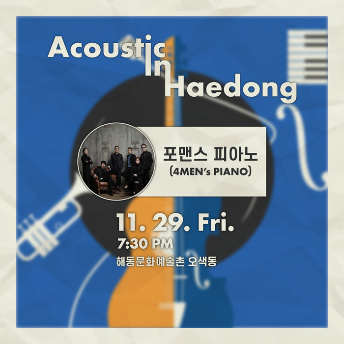 어쿠스틱 인 해동은 상반기부터 진행한 지역거점활성화 공연 프로그램의 연속 사업으로, 지역의 공연예술 분야와 거점공간 활성화를 위해 기획됐으며 해동문화예술촌 오색동을 중심 무대로 콘텐츠를 마련하고 있다.