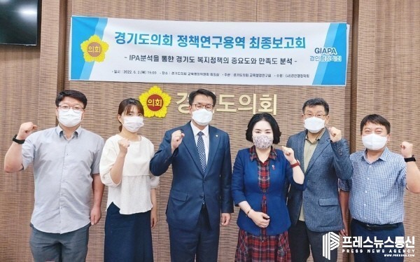 [프레스뉴스] 김대일 기자= 경기도의회 의원연구단체인 ‘행복한 삶 복지연구회(회장 권정선)’는 2일(목) 교육행정위원회 회의실에서 지난 4년간의 경기도 복지정책에 대한 중요도와 만족도를 분석하고 성과를 평가하기 위하여 ‘IPA분석을 통한 경기도 복지정책의 중요도와 만족도 분석’ 연구용역 최종보고회를 개최하였다.
