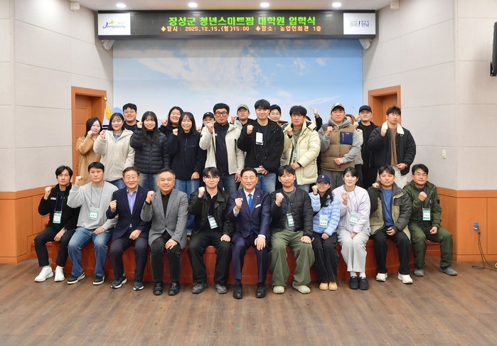 | ▲장성군이 15일 농업인회관에서 ‘청년 스마트팜 대학원’ 입학식을 개최했다.(사진제공=장성군) |