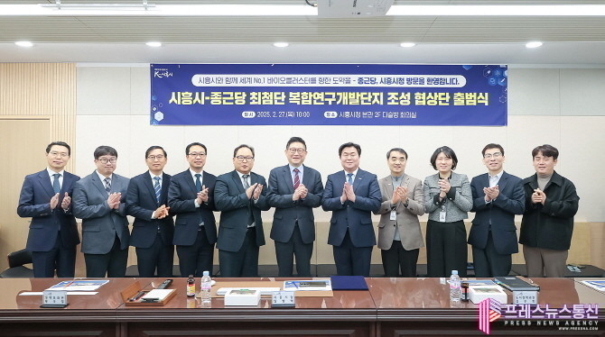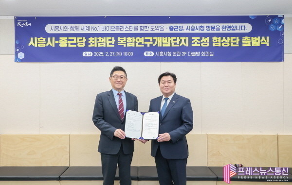 [프레스뉴스] 장현준 기자= 시흥시(시장 임병택)는 경제자유구역 배곧지구 연구3-1 용지의 우선협상대상자로 선정된 종근당과 사업계획을 구체화하기 위한 ‘종근당 최첨단 복합연구개발단지 조성 협상단’을 27일 출범했다.
