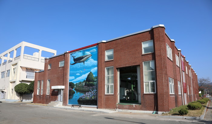| ▲ 진주하수처리장, 친환경시설 이미지 제고 위한 ‘이상한 변호사 우영우’ 속 고래가 그려진 벽화(사진=진주시) |