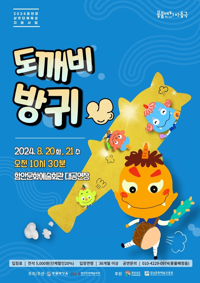 이번 공연은 2024년 함안문화예술회관의 상주단체로 선정된 풍물패청음의 공연으로 구성된다. ‘풍물패청음’은 지난 6월 우수 레퍼토리 ‘함안메나리프로젝트-열정’을 무대에 올렸으며, 이번에 선보이는 ‘도깨비 방귀’는 차세대 창작 신작으로 선보이는 작품이다.