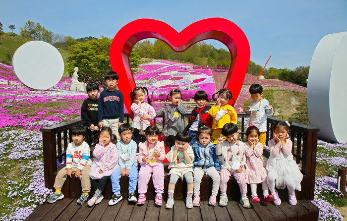▲산청군 생초국제조각공원 찾은 산청어린이집 어린이들(사진=산청군) |