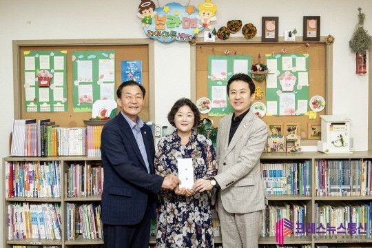 ▲안산시의회가 지난 19일과 22일 지역 복지시설 5곳을 잇달아 방문해 격려금을 전달했다. 19일 송바우나 의장과 박태순 의원이 보라매 지역아동센터를 방문한 모습.(사진= 안산시의회) |