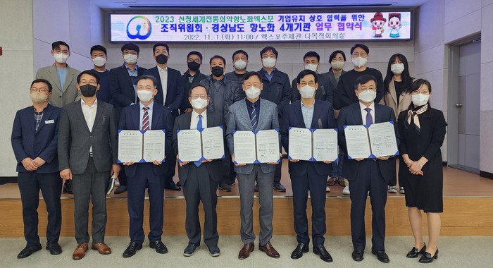 이날 협약식에는 박정준 엑스포조직위원회 사무처장과 노충식 경남테크노파크 원장을 비롯한 도내 4개 항노화 기관장 등 관계자 20여 명이 참석한 가운데 협약식이 진행됐다.