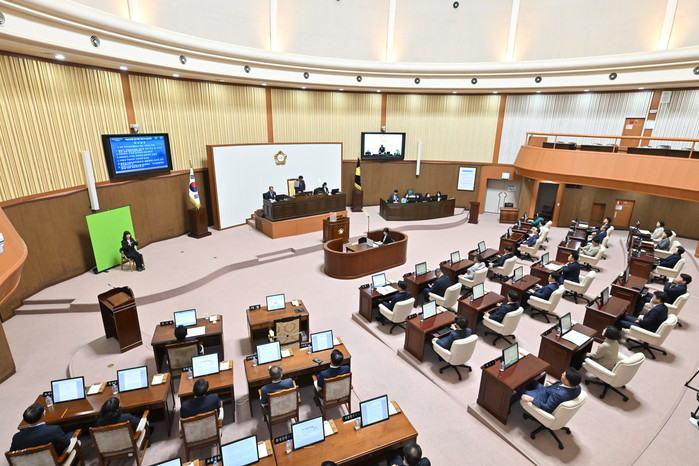 이날 본회의에서는 시정 방향을 제안하는 5분 자유발언도 이어졌다. 박미경 의원은 운창 성계옥 선생 등 지역 예술인들의 헌신을 언급하며 교방문화를 활용한 특화 관광 콘텐츠의 정례화와 상설화를 거듭 촉구했고, 황진선 의원은 지역 내 권역별 효율적 인력 재배치를 통해 도시공원 녹지를 주민 맞춤형으로 단장하자고 주장했다.