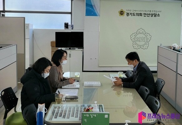 [프레스뉴스] 김대일 기자= 경기도의회 김태희 의원(안산시2, 경제노동위)은 25일 경기도의회 안산상담소에서 경기도시장상권진흥원 남서센터 센터장 등 관계자에게 주요 업무보고를 받고 골목상권과 전통시장, 소상공인 사업의 활성화를 위해 지원방안을 모색하는 시간을 가졌다.
