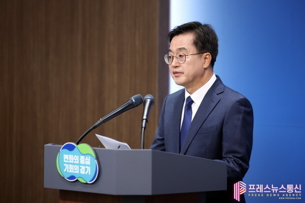 | ▲13일 오전 경기도청 브리핑룸에서 김동연 경기도지사가 정치현안 관련 입장문을 발표 하고 있다.(사진=경기도) |