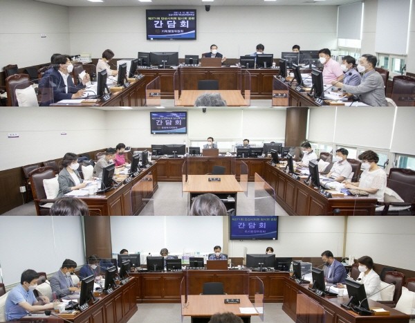 특히 코로나19 확산 방지 차원에서 세 개 상임위원회 모두 간담회 장소를 기존 각 위원장실에서 상임위원실로 변경한 가운데 위원들은 집행부의 보고 내용뿐만 아니라 서면 제출 자료도 꼼꼼하게 확인하는 모습을 보였다.