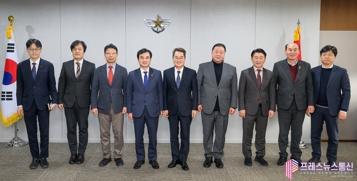 | ▲김동연 경기도지사가 28일 오후 국방부 본부에서 안규백 국방부 장관 주재로 열린 경기북부 반환공여지 개발 정부 지원방안 지방정부 의견 청취 간담회를 마치고 기념촬영을 하고 있다.(사진=경기도) |
