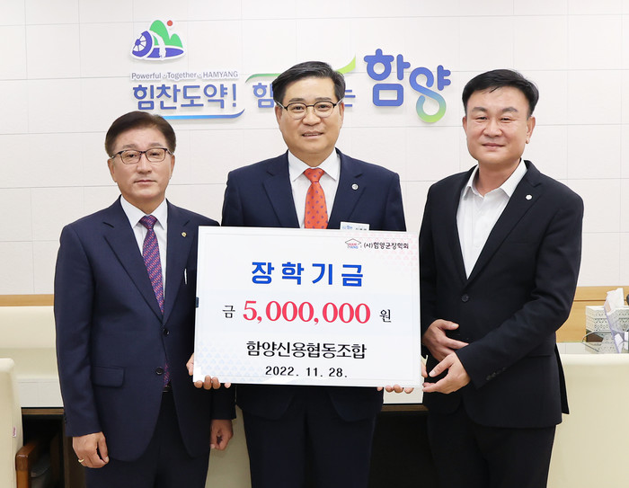 같은 날 함양신용협동조합에서도 이영재 이사장과 유성훈 이사가 (사)함양군장학회를 방문해 500만 원의 장학금을 기탁했다. 신협은 관내 대표적인 지역 금융기관으로 서민금융과 지역 경제에 크게 이바지하고 있다.