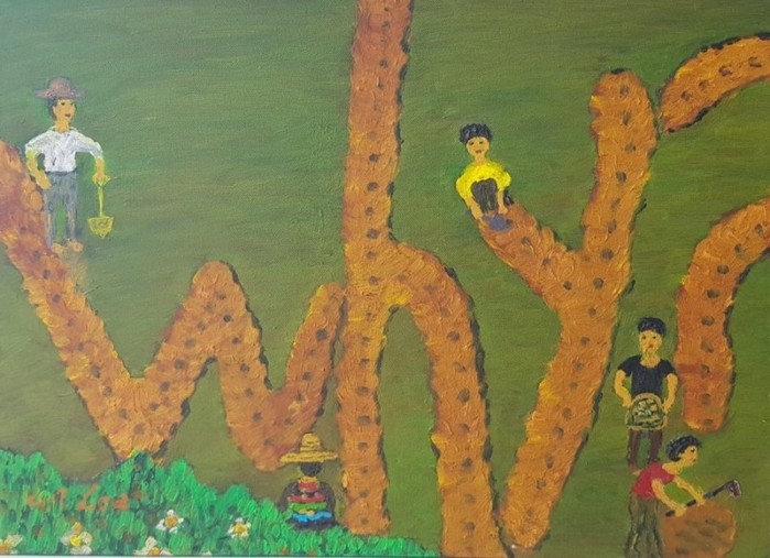 농업 현장에서 만난 이웃들과 만남을 극대로 화폭에 담거나 농사일 그 자체를 작품의 소재로 삼기도 했다. 마치 생명과도 같은 농업을 화폭으로 그대로 옮겨 놓았다는 생각이 들 정도다.