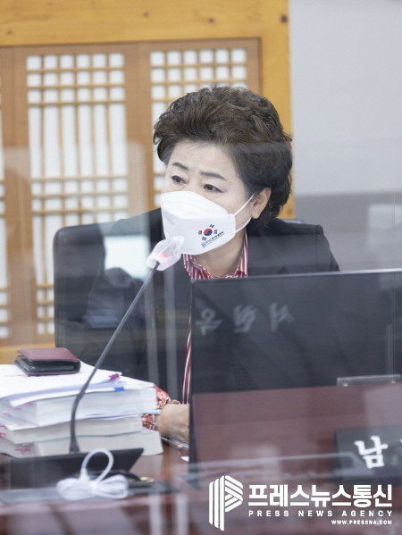 | ▲ 경기도의회 남경순 부의장이 지난 8일 상임위원회 회의실에서 진행된 킨텍스 행정사무감사에서 질의를 하고 있다.(사진=경기도의회) |