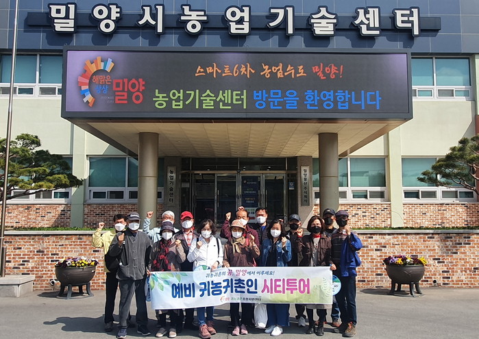 ▲ 밀양시는 지난해 4월 은퇴자공동체마을 입주자를 대상으로 ‘예비귀농귀촌인 시티투어’를 실시했다. (사진=밀양시) |